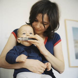 Während der Schwangerschaft fuhr ich auf einer Reportagereise nachts mit dem Zug durch Indien und hörte einen kleinen Jungen Mundharmonika spielen. Das war so bezaubernd, dass ich dort eine kaufte. Ich habe sie Friedrich zu seinem ersten Geburtstag geschenkt, weil ich mir gewünscht hatte, er würde auch einmal so schön damit spielen können.